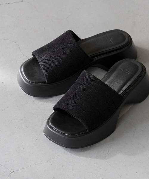 『洗練されたカジュアルを叶える、旬の厚底を取り入れたコーデュロイ ワイドバンドサンダル』