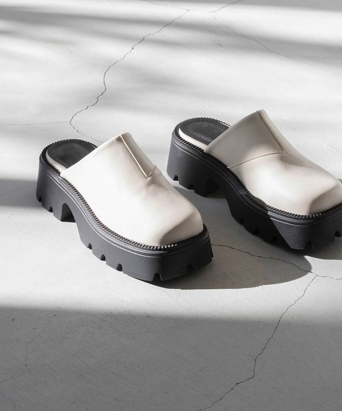 『ぽってりフォルムのプラットフォームサンダルで旬シルエットコーデに プラットフォームサボサンダル』
