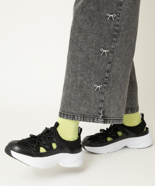 トレンド感のある厚底スタイルで、今っぽいお洒落が楽しめるスニーカーサンダル。