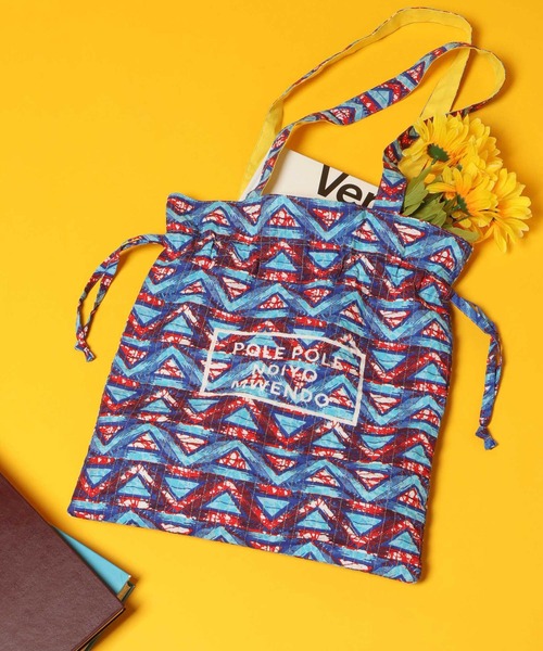 口元を絞って巾着型にもできるA4サイズのトートバッグ。