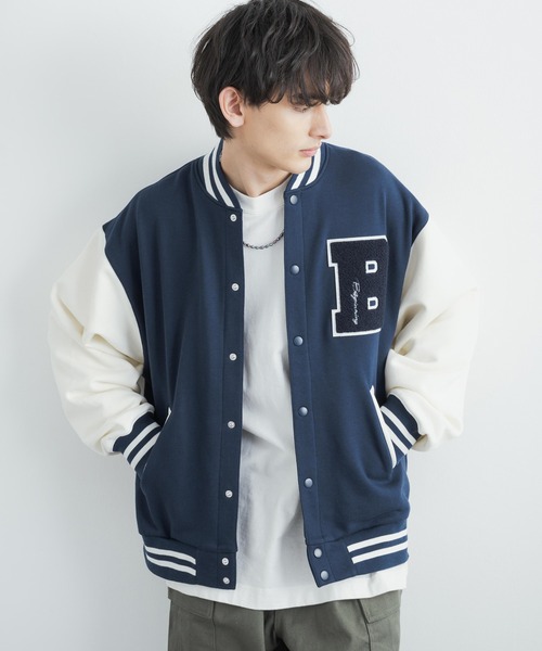 参考商品名:オーバーサイズ カレッジロゴ TC裏毛 ワッペン刺繍スタジャン アワードジャケット