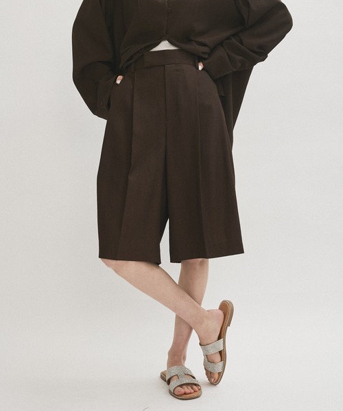 《セットアップ対応》ちょうど良い膝下丈シルエットがマニッシュな雰囲気に。こだわりのディティールが大人っぽく洗練されたムードに仕上げてくれるハーフパンツ◇2025春夏◇