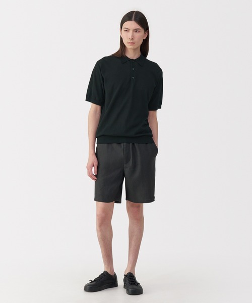 ポロシャツタイプの半袖セーターで、ラフな印象になるよう衿をしなやかな風合いになるように設計しました。軽い着心地で、衿付きでもストレスなく着用できます。