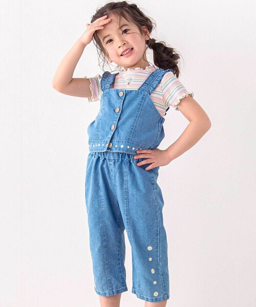 セットのデニムパンツのサイドにもお花のプリントをオン♪