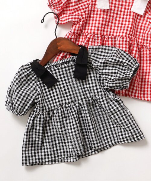 apres les cours(アプレレクール)のシャツ・ブラウス「WEB限定 肩リボンギンガムチュニック」は、ナチュラルなスタイルにさりげなくデザインをプラスしたおしゃれアイテム*