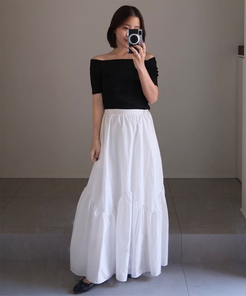 ティアードデザインが華やかさをプラスし、シンプルなトップスを合わせるだけで、こなれ感のあるスタイリングが完成。