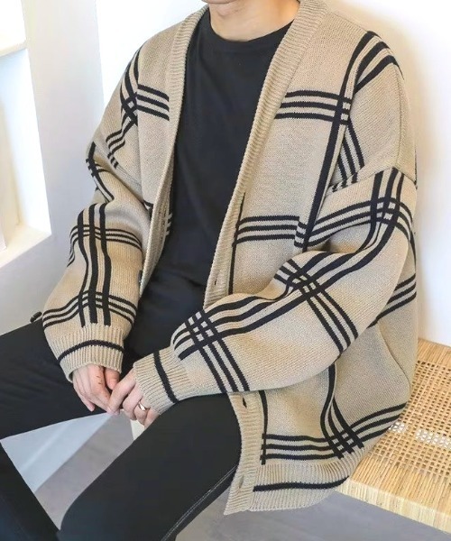 キーワード:カーディガン メンズ チェック ロング丈 七分袖 五分袖 秋 冬
