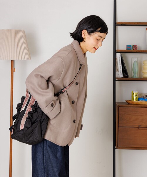 素材:表地: ポリエステル65% レーヨン20% アクリル15% 裏地: ポリエステル100% テープ: 綿100%