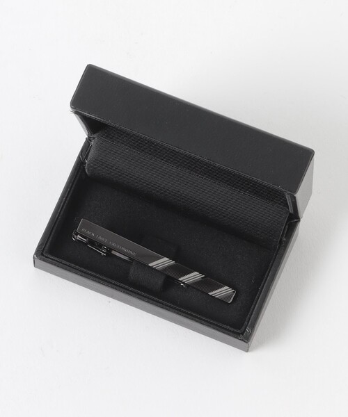 プレートの片側に繊細なカットでストライプを施したシンプルでスタイリッシュなデザインのタイバーです。汎用性が高く、ギフトにもオススメの1品です。