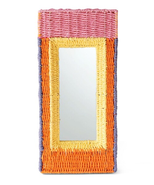 カラフルなペーパーロープで編み込まれたミラー●小ぶりなサイズなので設置しやすいミラー
