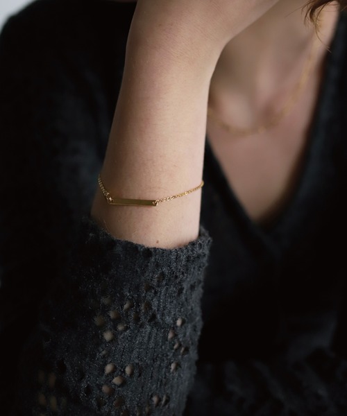 オリジナルスクエアパーツをあしらったフラットケーブルチェーンブレスレット。