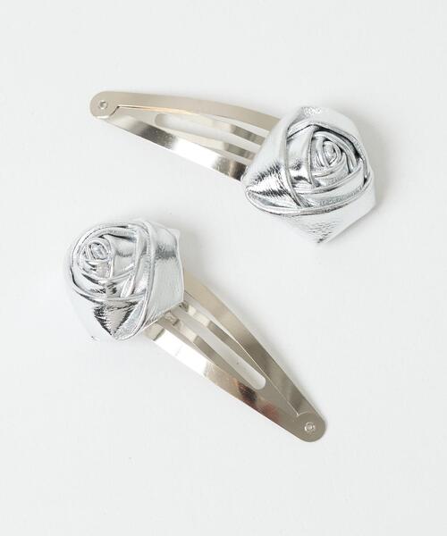 PU素材のローズモチーフがプラスされたトレンド感溢れるヘアピン。