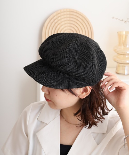 ■point通気性の良いポリエステルサーモ素材のキャスケット。