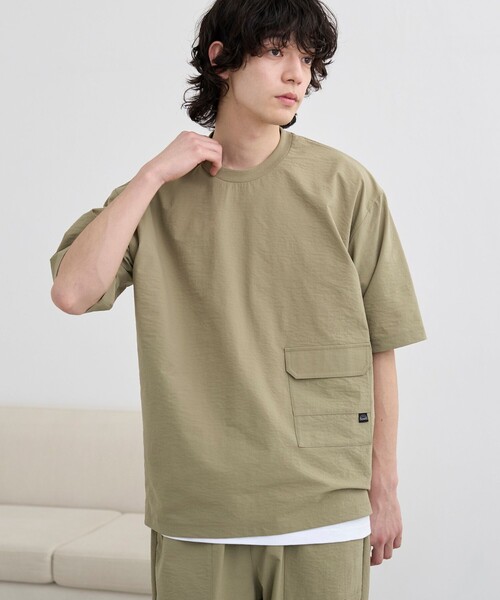 布帛のTシャツなのでカットソーのTシャツとは違ったキレイ目な印象に。