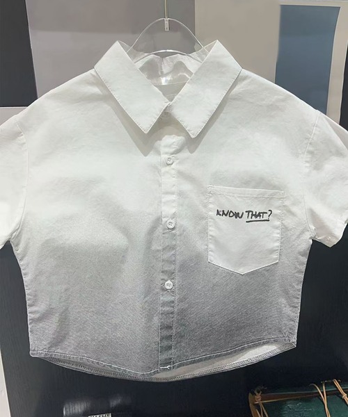 シンプルなデザインながら、胸元の英字ロゴ刺繍がアクセントになったキッズシャツです。