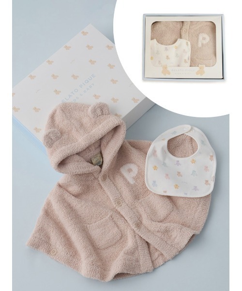 gelato piqueで人気のBABYアイテムを組み合わせた、可愛い6種類のギフトBOXシリーズが新登場しました。さらりとした肌触りの’パウダー’素材のベア耳付きフードポンチョと、カラフルなぬいぐるみ柄スタイの2点を、専用のBOXに入れてお届けします。色は優しいベージュと、オンライン限定カラーのピンク、ブルーの全3色展開。ほかにも様々なアイテムを組み合わせたギフトBOXをご用意しているので、お好みのセットをお選びいただけます。誕生日や出産のお祝い、季節のギフトなどにおすすめです。