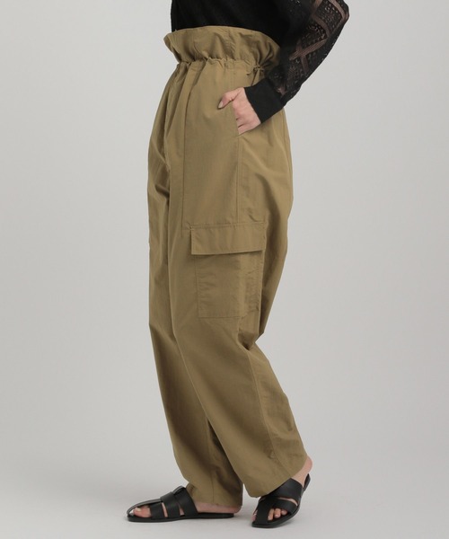 ・ウエストをドロストで調整できるスーパーハイウエストパンツ