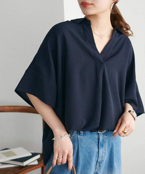 スキッパーデザインの襟元は、抜け感が出て顔周りもスッキリ◎