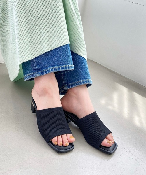 夏にぴったりのリブニット素材を使用した、足当たりがソフトなミュールサンダル。