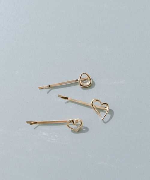 ミニサイズのハートモチーフがワンポイントになったヘアピンを3点セットでご用意。