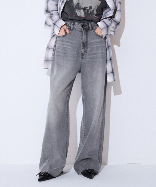 柔らかい素材で落ち感があるので、スッキリと穿きやすいワイドデニム。