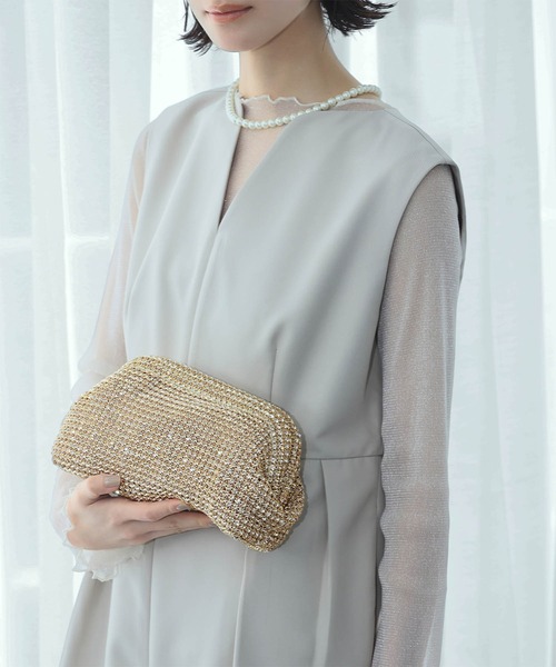 グリッターの煌めきがゴージャスな印象のパーティーバッグ。