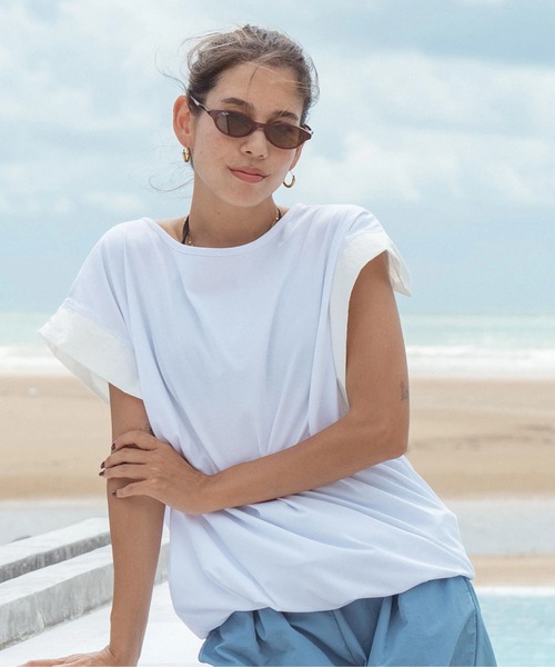 二の腕をすっきり見せつつ、インナーが見えないようにカバーをしているので、デイリー使いにも安心して着こなせます。