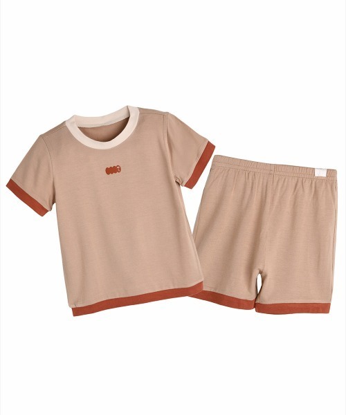 フロントにワンポイントマークが付いた半袖セットアップ。伸縮性に優れたレーヨン混生地を使用し、カラー配色のパイピングで遊び心のあるデザイン。ベビーギフトとしてもおすすめです。注意)こちらの商品は全サイズ、「開きなし」となりますので予めご了承ください。