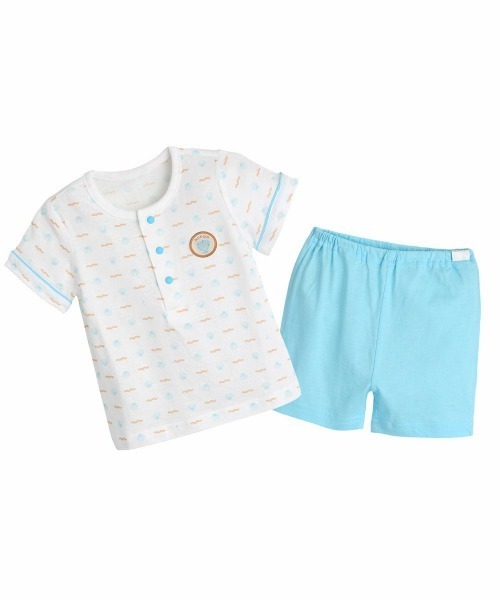 胸元の貝モチーフのワッペンがアクセントの半袖ルームウェア。通気性を考慮した生地感で涼し気な印象を与えてくれます。夏のお子様のルームウェアとしてぴったりな商品です。注意)こちらの商品は全サイズ、「前半開き」となりますので予めご了承ください。