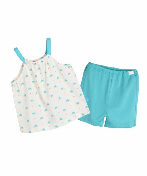 吸湿性と放湿性に優れた生地で暑い季節にぴったりのキャミソールとショートパンツのセット。ブルーやオレンジの太陽マークがポイントです。ベビーギフトとしてもおすすめです。注意)こちらの商品は全サイズ、「開きなし」となりますので予めご了承ください。