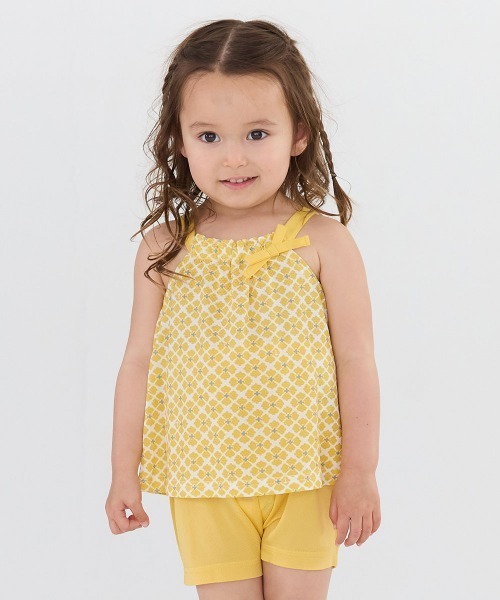 モイモルンらしいユニークな花柄のキャミソールとショートパンツのセット。通気性と吸収性に優れたレーヨン特有のサラサラした感じで着心地の良いアイテム。着脱しやすいデザインでお出かけにもぴったりです。ベビーギフトとしてもおすすめです。