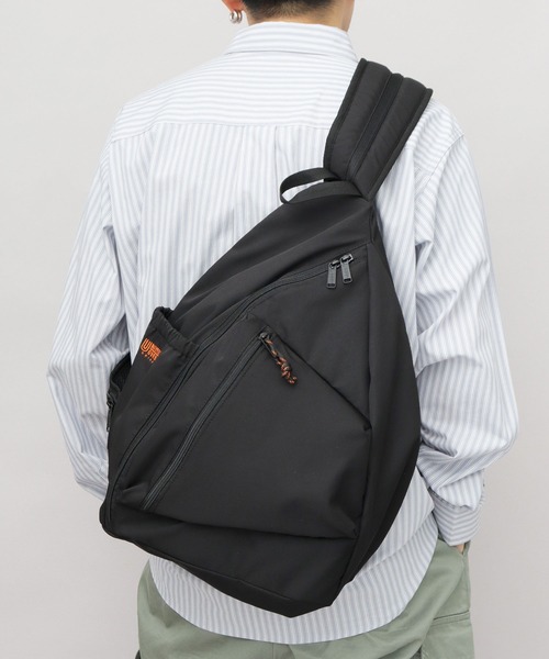 懐かしくも新しさのある、柔らかな三角フォルムのスリングバッグ。リュック感覚で使える大きめのサイズ感がポイント。体にフィットする形状で、スリングして荷物を取り出しやすく、フロント掛けもしやすい使いやすさが魅力。