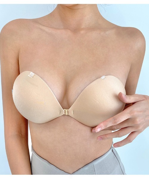 大胆な肌見せコーデにも大活躍のヌードブラ ♡しっかりとした粘着度で安心感のある着け心地が魅力です。着けるだけで手軽にボリュームアップとブレストメイクができるアイテムは、中央部分のホックを使いワンタッチで装着可能。肌に馴染みやすいベージュカラーとシックなドレスコーデに最適なブラックの2色展開で、クリアなストラップ付きなので、水着はもちろん肌見せの多いドレスルックなどもスマートな仕上がりを楽しめます。