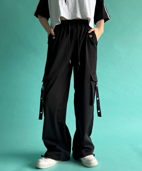ゆるっと穿けるワイドシルエットに、サイドのハトメベルトデザインが映えるカーゴパンツ。
