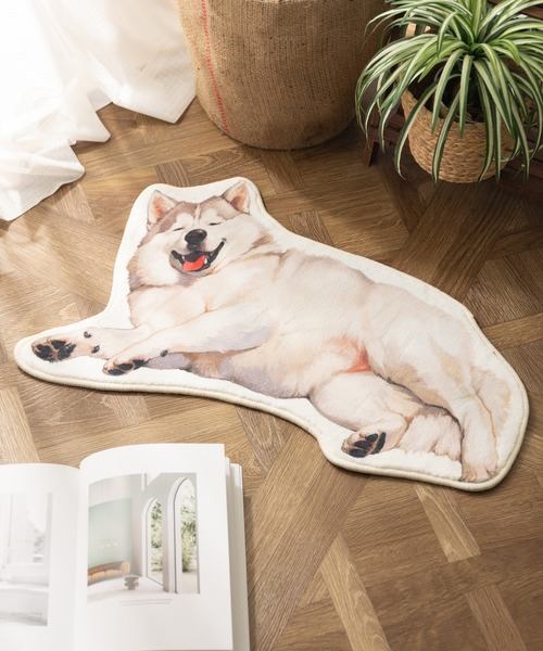 愛くるしいワンちゃんたちがおなかを見せてくれる姿が描かれた起毛マットです。