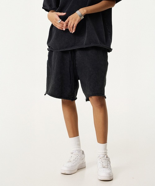 顔料染めしたスウェットショーツをデニム同様のブリーチ加工でヴィンテージライクな表情に仕上げています。