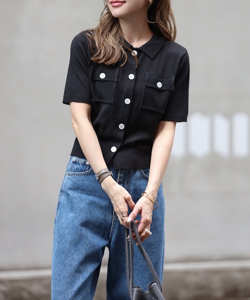 胸元のポケットデザインがアクセントになり、こなれ感をプラスします。
