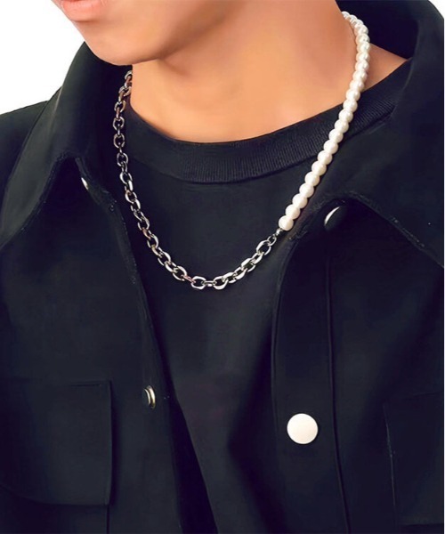半分がモチーフパールに切り替えられた特徴的なチェーンネックレス。