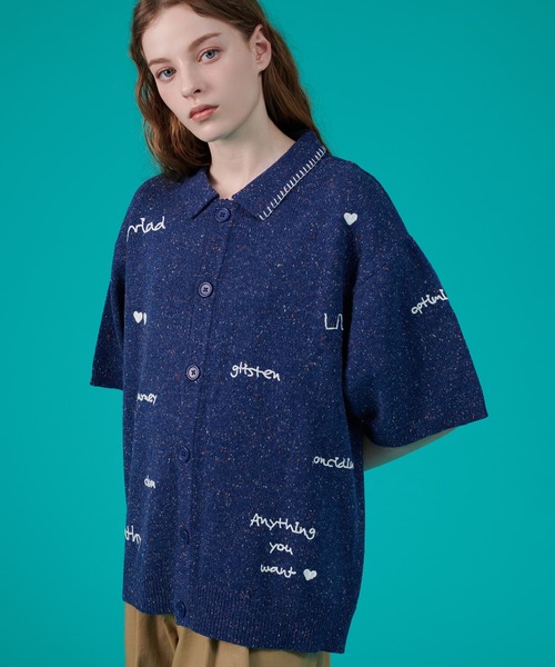 参考商品名:HAND WRITTEN EMBROIDERY KNIT SHIRT / ハンドライティング刺繍ニットシャツ