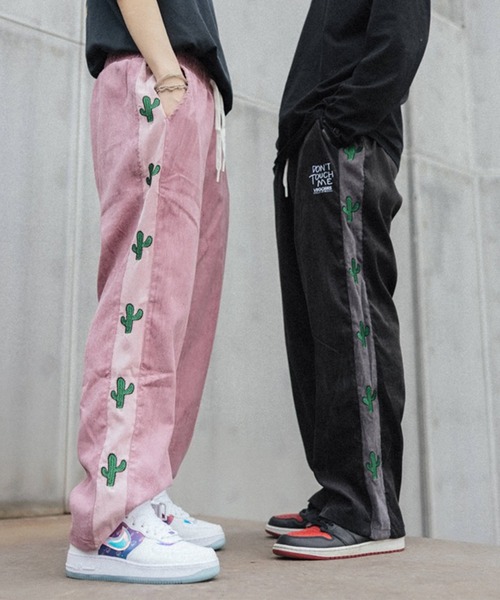 参考商品名:【HOOK】サイドサボテン刺繍ライン入りコーデュロイワイドパンツ