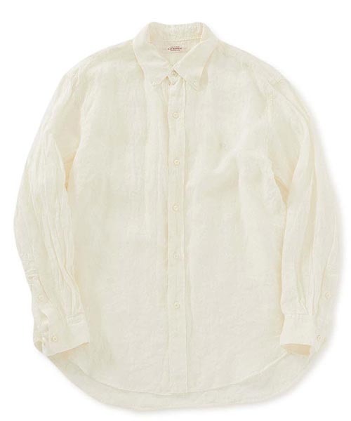 ボタンダウンシャツの顔とも言える、第一ボタンを開けた際の襟元のロールの返りにこだわり、かっちりとし過ぎず上品さもあり、洗いざらしのままでも存在感のあるボタンダウンシャツです。