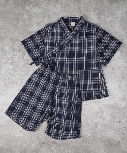 浴衣 チェック・ドット柄甚平 キッズ 子供 男の子