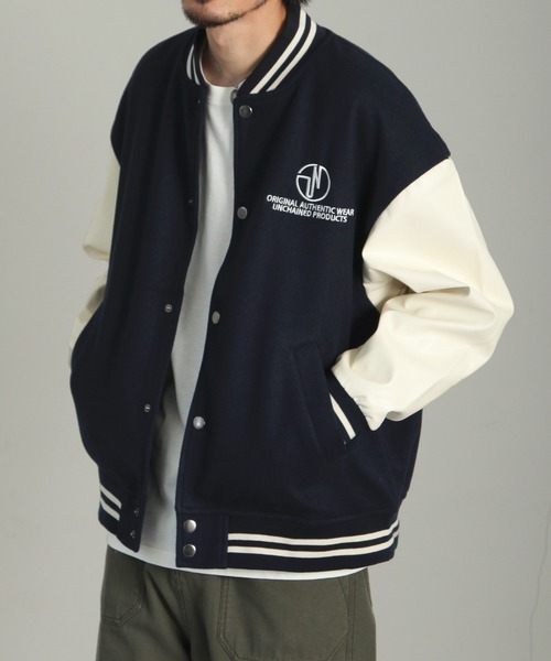 参考商品名:【UNCORD】WOOLLIKE FAUX LEATHER SLEEVE STADIUM JACKET/ウールライクレザー切替スリーブスタジャン
