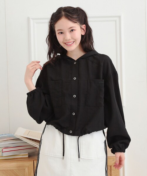フード付き、裾のコードでシルエットは調整可能です。