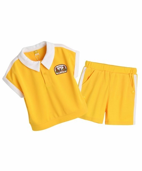 軽いポリPK素材のため、快適に着用できるセットアップ。カラーと袖の白い配色がすっきりとした印象を与え通園・通学ルックにぴったりなアイテム。(W242STF05P)と 兄妹ルックがおすすめです。