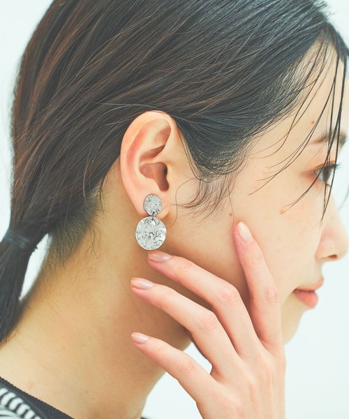 表面の加工感がポイントのサークルモチーフイヤリング。