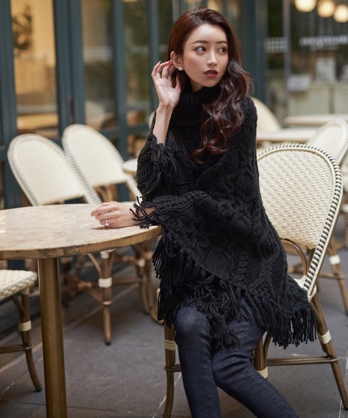 キーワード:ポンチョ レディース フリンジ 秋 冬