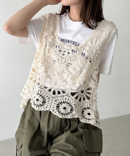 いつものコーデに+1♪トレンドのレイヤードコーデが叶うクロシェ編みビスチェ