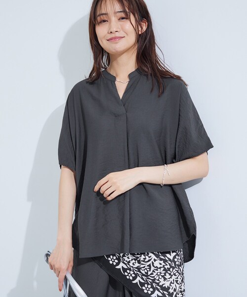 やや光沢感もありカジュアルすぎず、程よいとろみと肌離れで長いシーズン着用していただきやすいアイテムです。