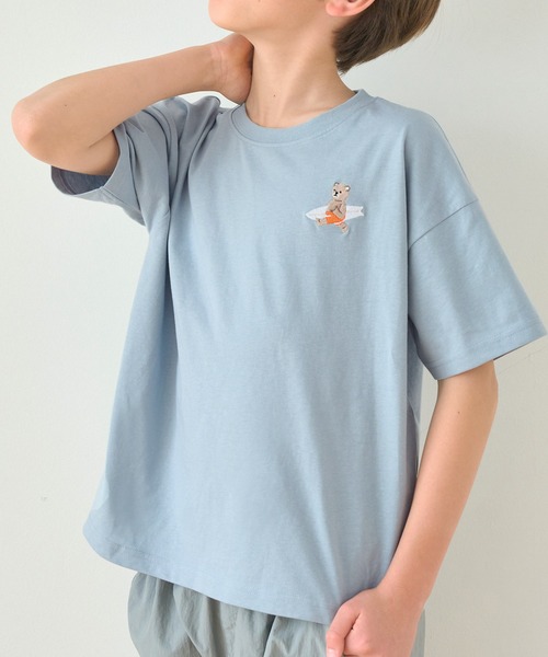 ジュニア トップス 半袖Tシャツ 刺繍 ワンポイント 丸首 プルオーバー くま サーフィン ホットドッグ カジュアル 男の子 ボーイズ 120 130 140 150 COCA